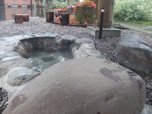 カッパ着たまま、靴下だけ脱いで入る足湯。