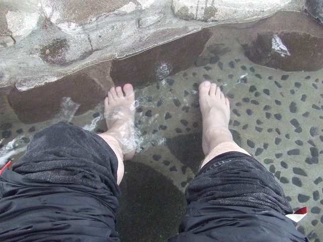 足湯から出たらまたそのずぶ濡れの靴を履くのに。。。