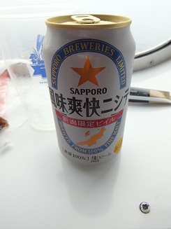 そのあとは缶ビールをコップに注いで飲む。