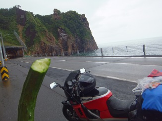 お裾分けいただいたキュウリをボリボリ丸かじり。