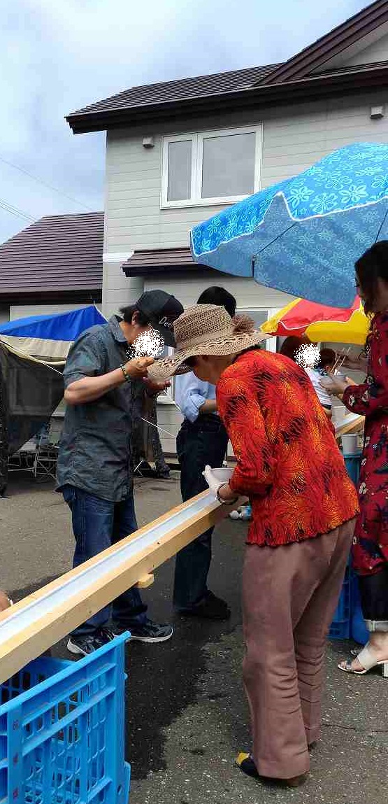 いとこも集まっており、なぜか流しそうめんを食べる。