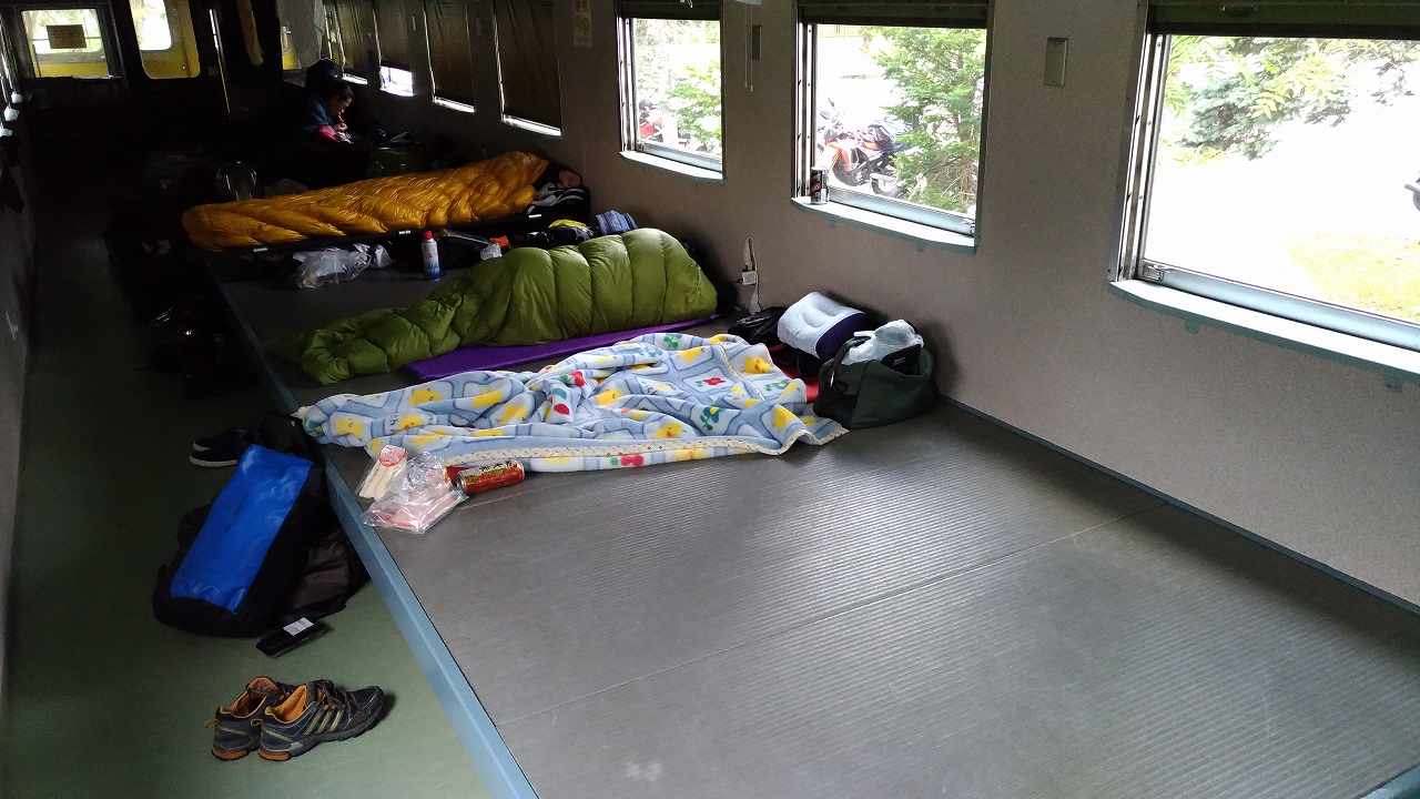 行ってみたかった興部にある汽車を改造した無料ライダーハウスへ。